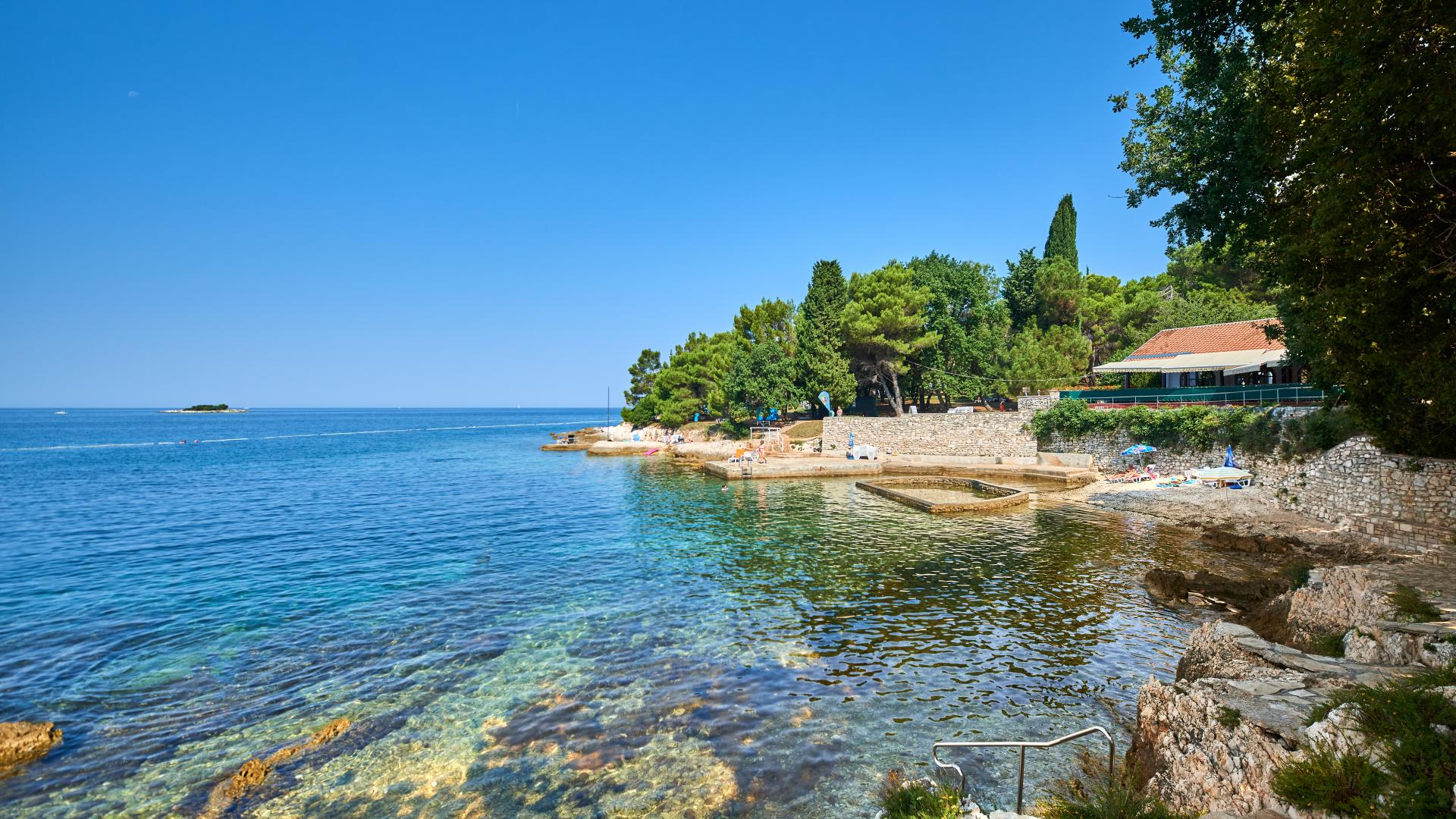 Der Strand der Ferienanlage Laguna Bellevue ist etwa 250 Meter lang. Der hauptsächlich steinerne Strand liegt in der Plava laguna (Blauen Lagune). Bis zum Strand können Sie über die eingerichteten Wege durch das Wäldchen oder entlang der Promenade an der Meeresküste gelangen.