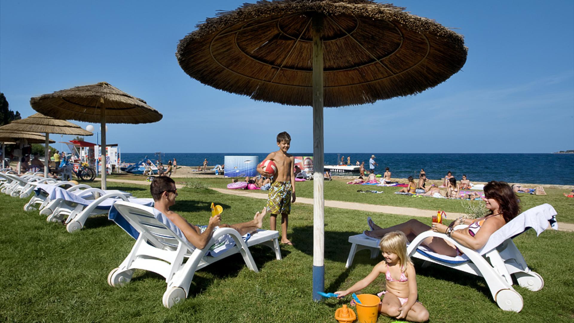 Der herrliche Sandstrand Val Marea Sandy Family befindet sich in einer kleinen Bucht nur wenige Schritte von den Valamar Collection Marea Suites entfernt. Diese kleine Oase der Entspannung bietet alles für einen perfekten Tag am Strand: kristallklares Meer, dessen Qualität mit der Blauen Flagge gekrönt wurde, eine große Liegewiese und Sandbereiche zum Sonnenbaden mit Sonnenliegen und -schirmen sowie einen Kinderspielplatz.