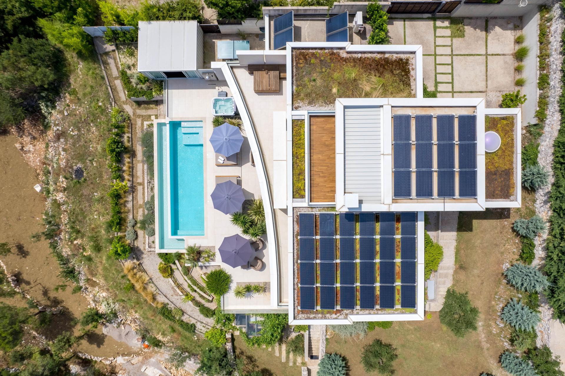 Die Villa ist als Passivhaus mit grünem Dach, einem biologischen und aromatischen Garten und einem eigenen Olivenhain gebaut. In einem Wort - majestätisch!