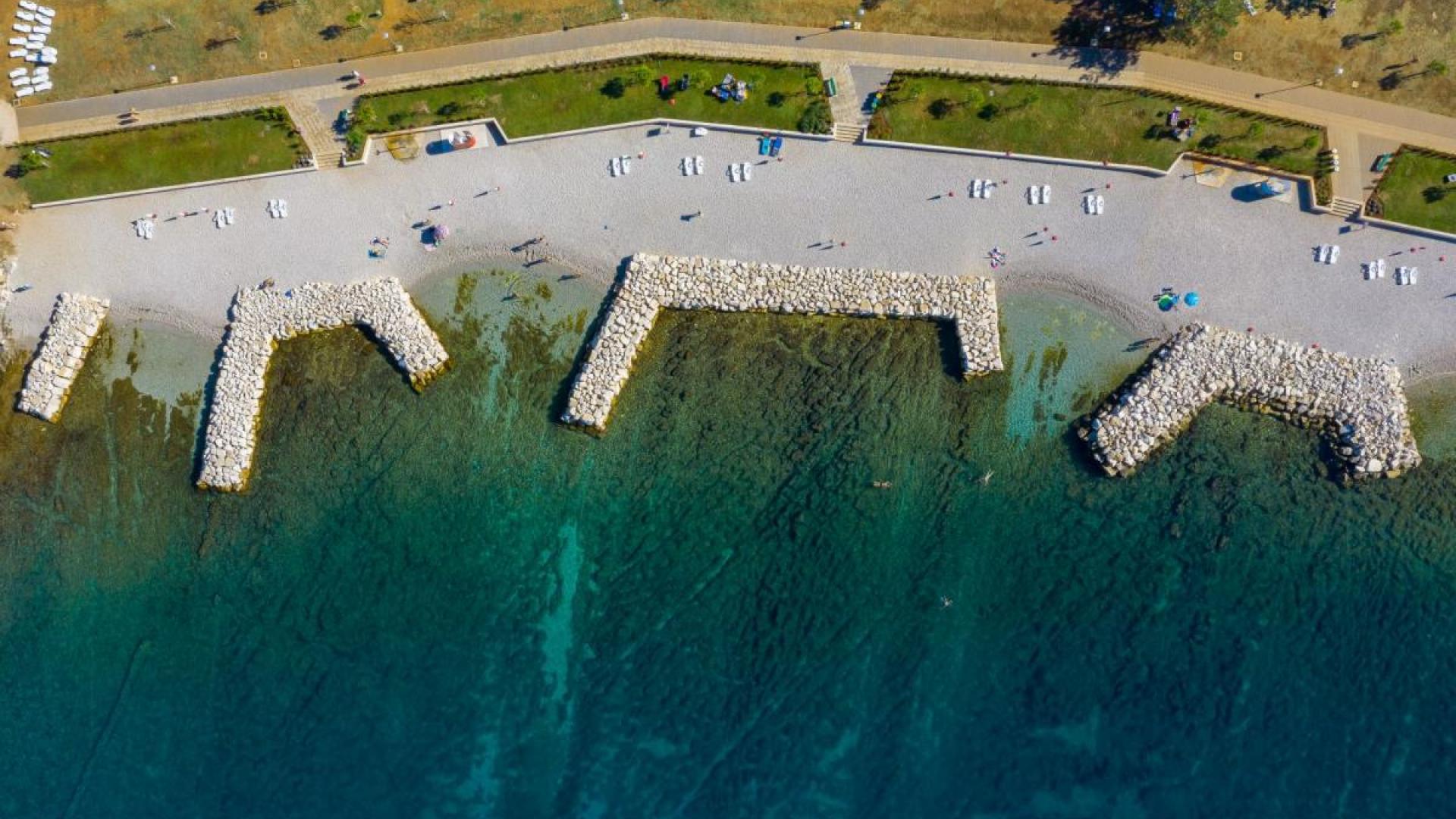 U sklopu hotela Laguna Materada nalazi se kamenita plaža s koje se uzdiže Plava zastava, nagrada za čisto more i morsku obalu. Osim za goste hotela, ova urbana plaža omiljeno je mjesto i lokalnog stanovništva. Smještena je na malom stjenovitom polutoku s manjim šljunčanim predjelima.
